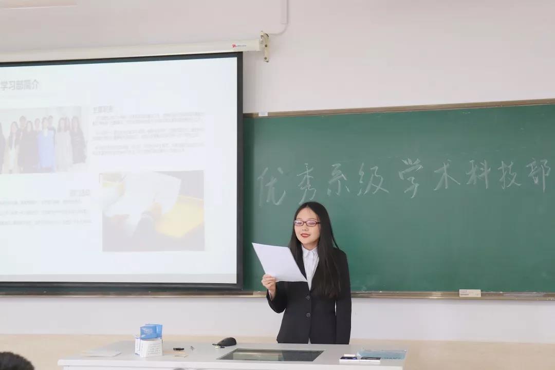 5月23日中午,学院团委在7幢404举行院2018-2019学年度“优秀系级学术科技部”的评选工作。旨在通过评选推动各系积极开展工作,服务同学成长成才。我系团总支学生会学习部陈芊妤同学进行工作总结汇报、PPT展示,李新月、金则励同学进行答辩。